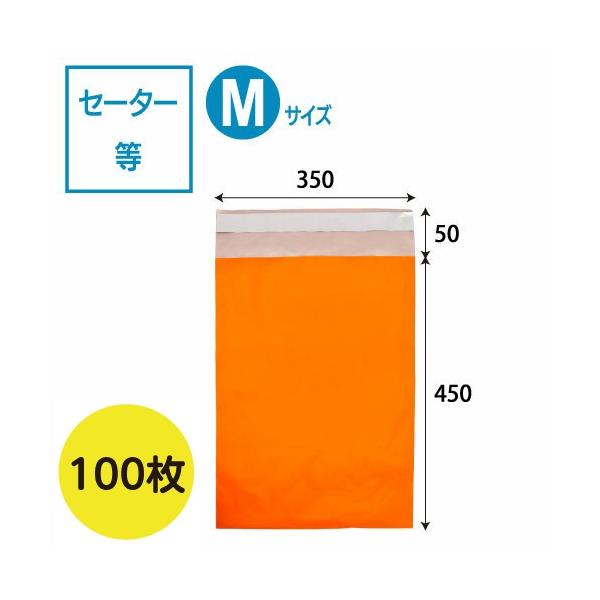 カラー宅配ビニール袋(60ミクロン)オレンジ M 100枚 350x450+50mm 防水 高強度 宅配ポリ袋