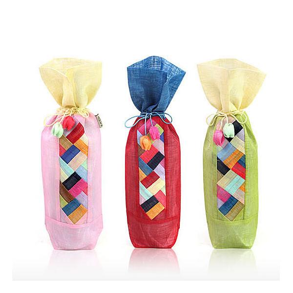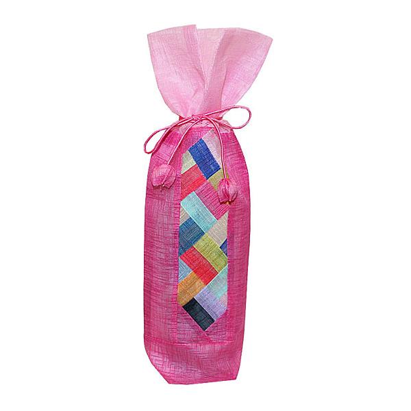 韓国の伝統的な布の「モシ」で作ったワインチュモニ(ワイン用巾着袋)です。