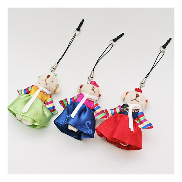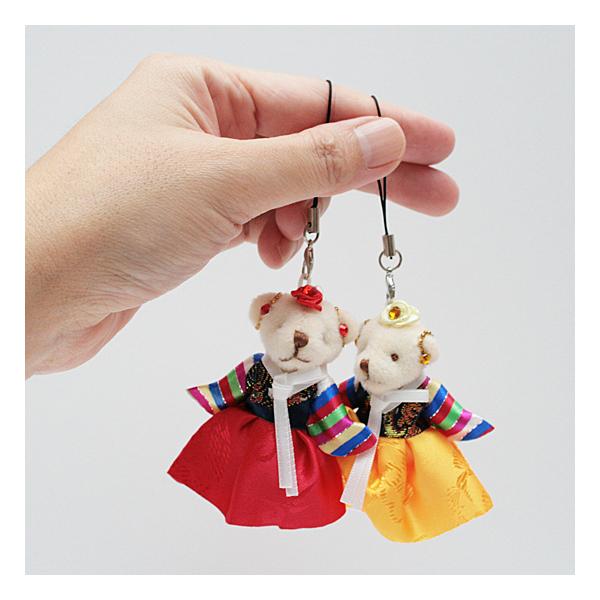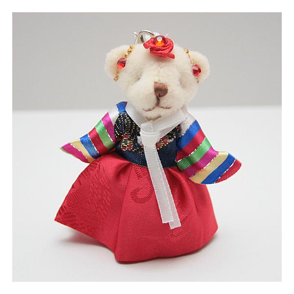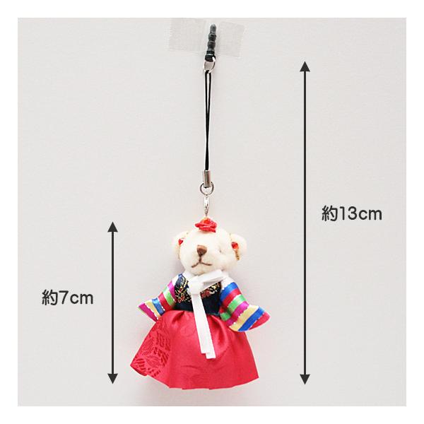 韓服 ぬいぐるみ くま ストラップ バラ飾り 韓国 お土産 伝統 チマチョゴリ かわいい