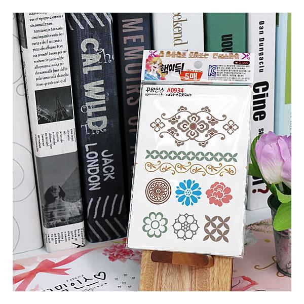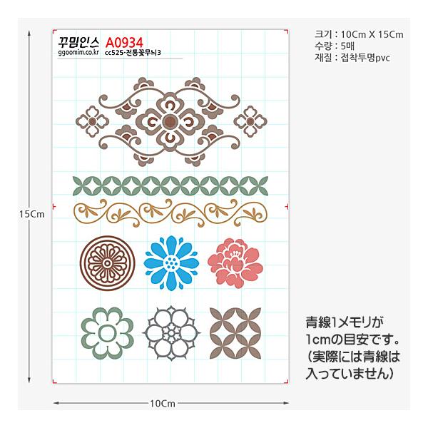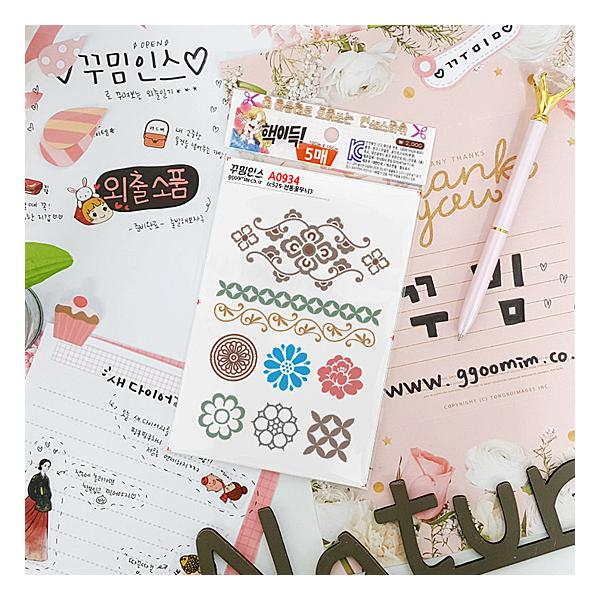 韓国の伝統花模様3 フリーカット ステッカー 5枚セット シール デコレーション かわいい