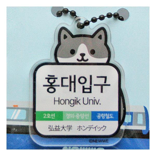 ニャンコの 韓国 地下鉄駅 アクリル キーリング 弘大入口 ホンデイック ハングル お土産 ソウル 韓国語 キーホルダー