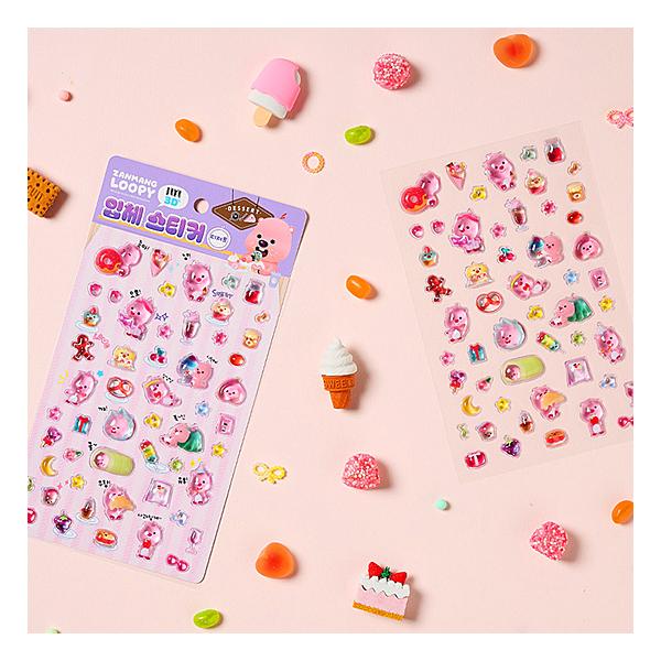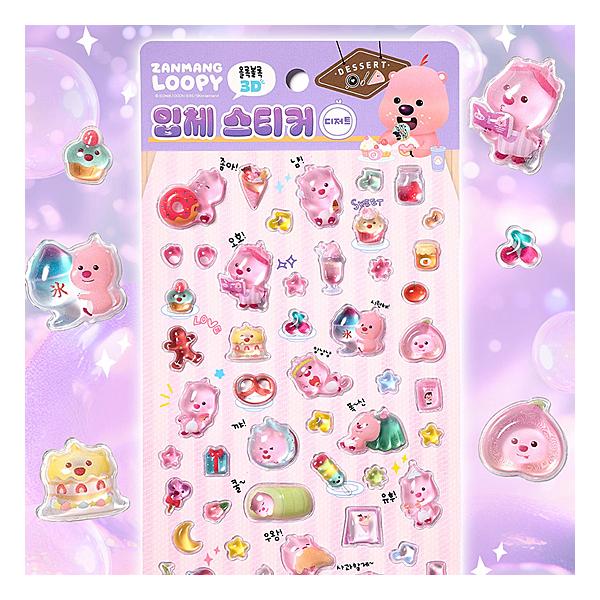 ジャンマンルピー 3D 立体 デザート ステッカー シール ぷくぷく ぷっくり ドロップ ZANMANG LOOPY 韓国 公式 かわいい