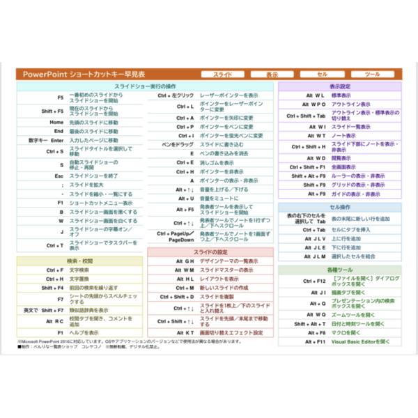 PowerPoint用ショートカットキー早見表 高品質つや消しパウチ・ラミネート加工 時短 スライド自在 プレゼン上手に プレゼントに