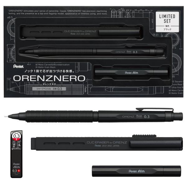限定 ぺんてる オレンズネロ限定ブラックセット0.3 芯径:0.3 内蔵芯:B 品番:PP3003-AST:0.3 軸色 ブラック