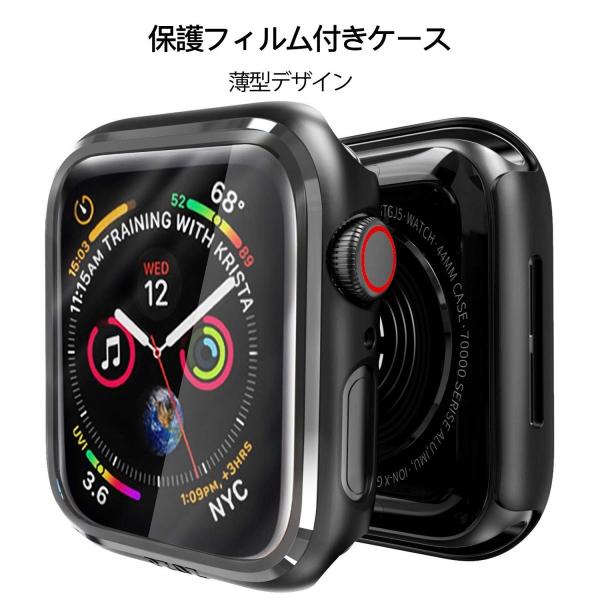 Apple Watch Series4/Series5/6 44mm アップルウォッチ4/5/6 カバーフィルム PET 超薄型 全面保護 耐衝撃 PC 対応 (44mm, ブラック含有フィルム )2個セット