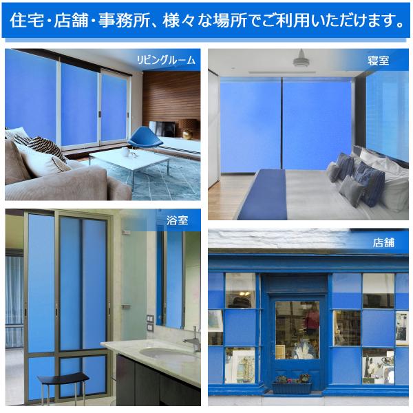 在一掃セール 窓用フィルム プライバシー保護 ガラス飛散防止シート 断熱フィルム UVカット 貼り直し可能 すりガラス調 (ブルー, 90cm*200cm)2枚セット