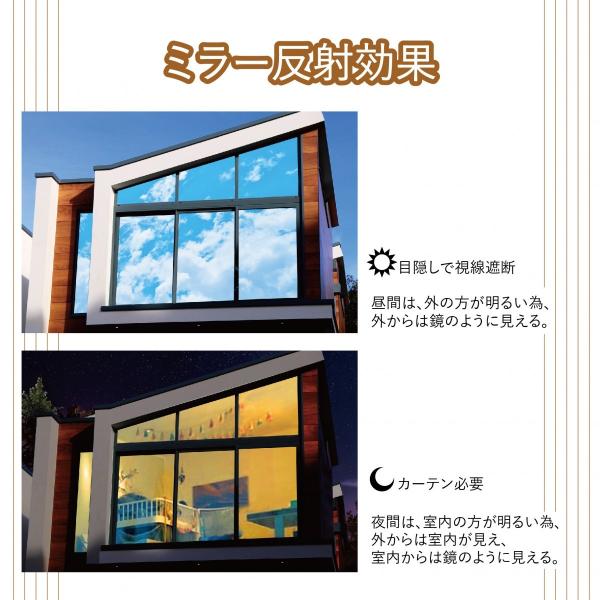 ・【透明ガラスの目隠し、プライバシー保護、防犯シート】外からの視線を遮りながら、充分に外の光を室内に取り込めます。窓ガラス用防犯フィルムとして使えます。ただし、このフィルムはマジックミラー効果あります、マジックミラーとは明るい側から暗い側は透視できないが、その逆は可能な鏡のこと(そのため昼夜見える側が逆転します)