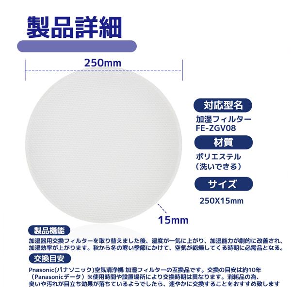 2枚セット パナソニック FE-ZGV08 加湿フィルター 加湿空気清浄機交換用 Panasonic 加湿空気清浄機 交換用フィルター 加湿 全国送料無料 (互換品)
