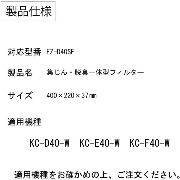 【適用機種】シャープ空気清浄機のKC-D40-W、KC-E40-W、KC-F40-W。※対応機種をお確かめの上、ご注文ください 。