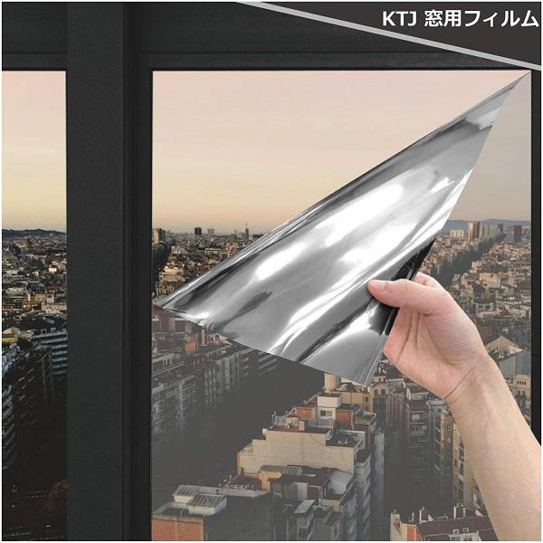 窓ガラスフィルムガラス台風対策 暴風対策 破片飛散防止 マジックミラーフィルム 目隠しシート断熱遮光 UVカット (90x250cm, シルバー)接着剤タイプ