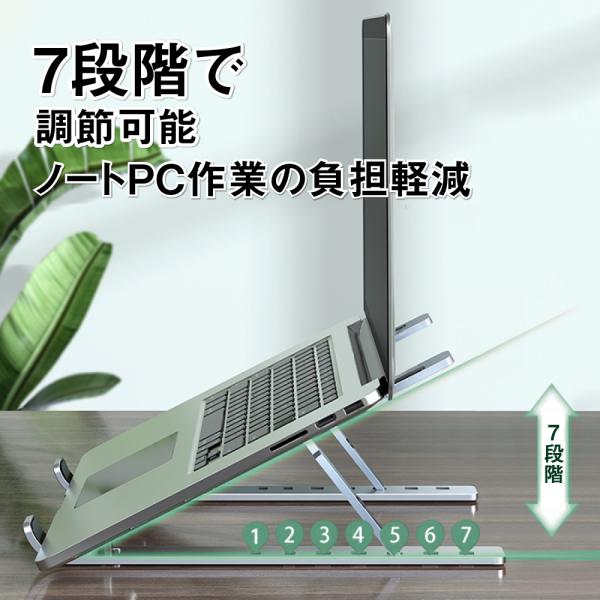 ノートパソコンスタンド 折りたたみ PCスタンド タブレット 7段階角度調整 アルミ合金 テレワーク 姿勢改善 放熱コンパクト 在宅勤務 持ち運び カバー付