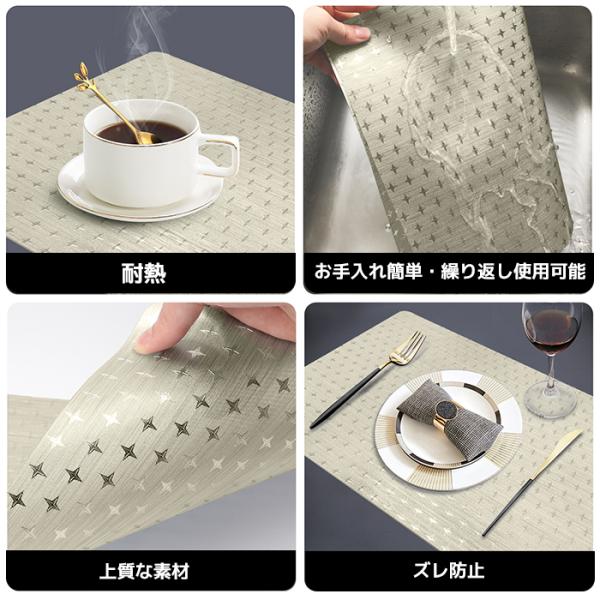 新生活応援 ランチョンマット 4枚セット おしゃれ 撥水 水洗い可 ランチマット 45cm×30cmx0.1cm 星柄シャンパン色