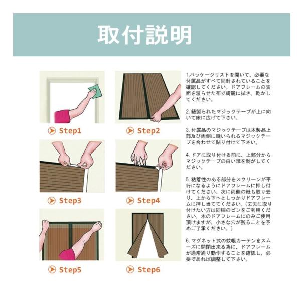 ・「自動開閉」26個強力マグネットで、手を使わなくても、瞬間に自動閉めることができます。両手を解放し、荷物の運びなどにも便利です。自動的に開閉式なので、風通しが良くて、子供とペットでも簡単に通り抜ける網戸です。