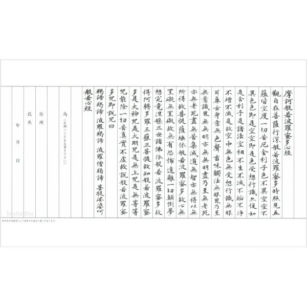 写経用紙 般若心経の手本が付き。