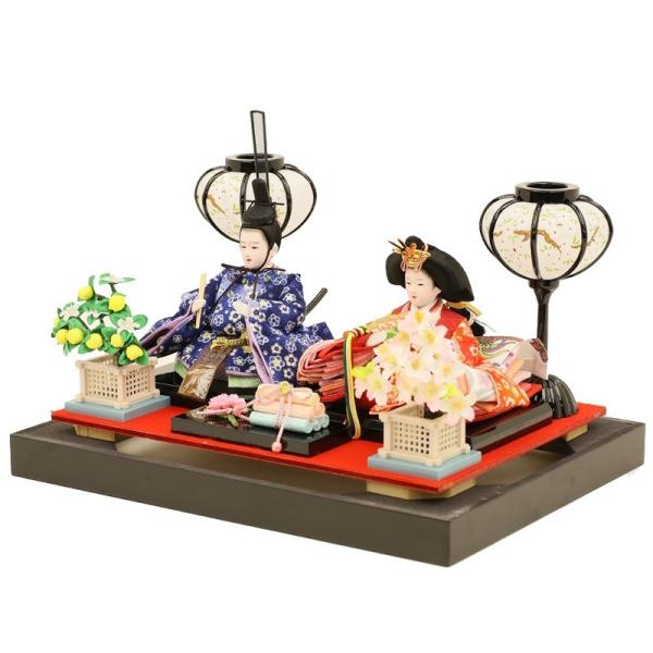 男雛には青色、女雛は赤色を基調とし桜柄が織り出された、京都西陣金襴織物の上質衣装です。