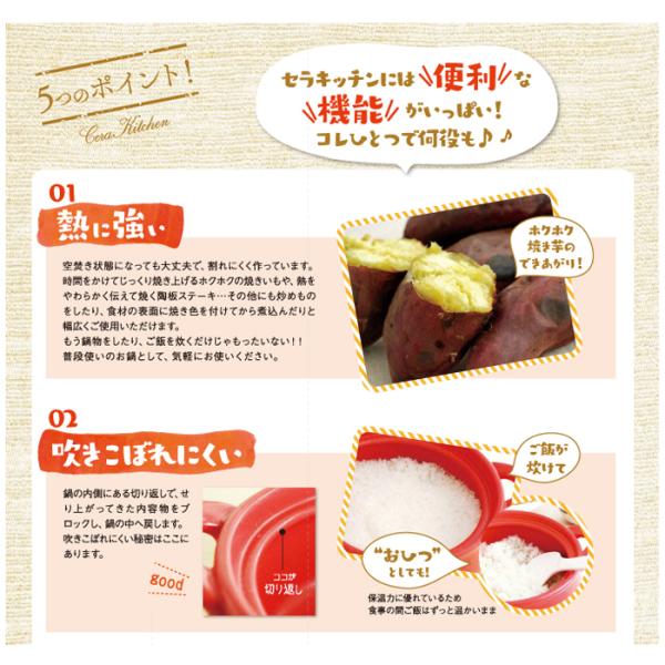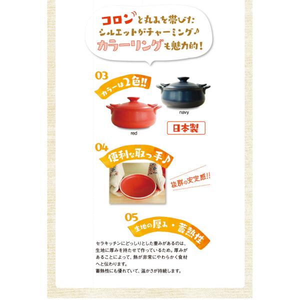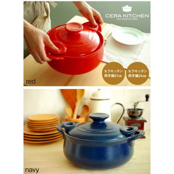熱に強い 吹きこぼれにくい 日本製 取っ手付き 蓄熱性K+dep セラキッチン両手鍋21cm CK-001 レッド