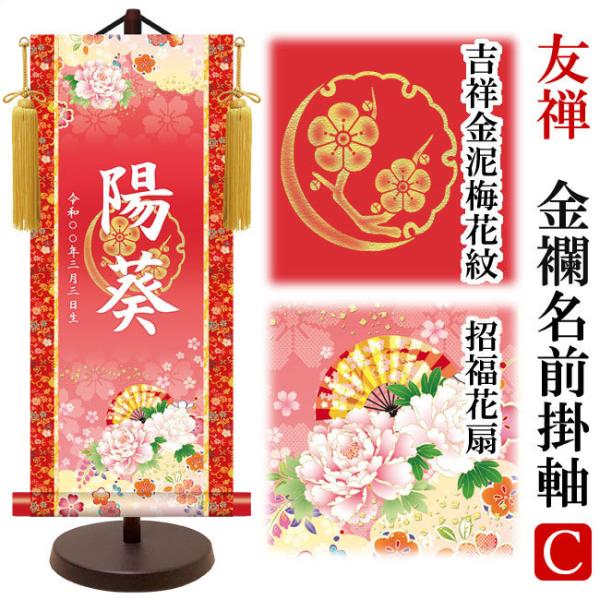 選べる 女の子用 名前旗 吉祥金泥梅花紋 小 名前旗 刺繍 雛人形 ひな人形人形工房天祥 名前札 初節句 和小物 脇飾り