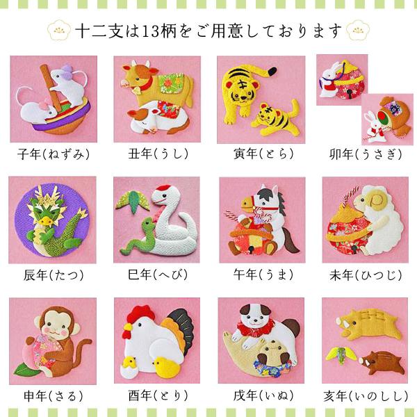 縮緬(ちりめん)の生地を使用し、ひとつひとつが手作りの干支お名前入りタペストリー。