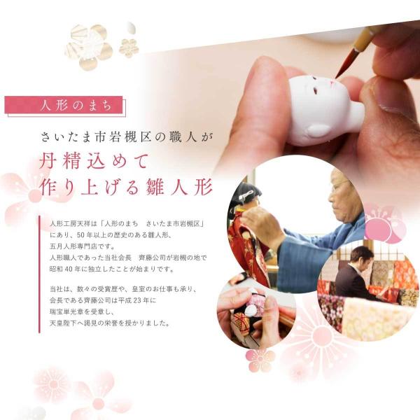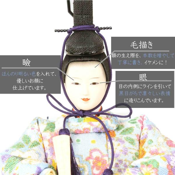 京都西陣裂地を用いた上質なお着物は、小さいながらも華やかさが際立つ親王飾りです。