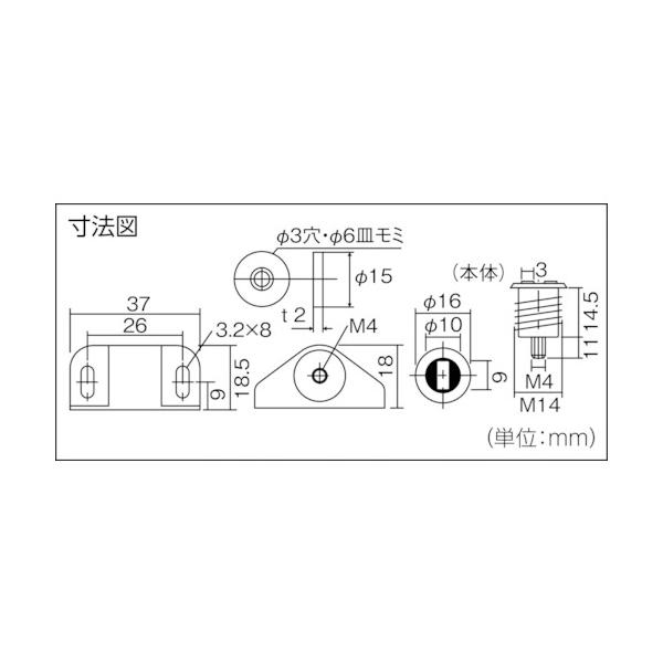 ●吸着面の前後微調整が可能です。<br>●耐衝撃性にも優れています。<br><br>●全長(mm):37<br>●吸着力(N):30<br>●色:茶<br><br>●受板用推奨サラねじ:2.4mm<br>●本体取付穴寸法:3.2×8mm長穴<br><br>●本体:樹脂(PA)<br>●受け金具:スチール<br>●マグネットの種類:異方性フェライト<br><br>●受け金具<br><br>…金物・建築資材 建築金物 キャッチ…