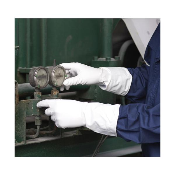 "●塩化ビニールの特長である耐油性能をより向上させた手袋です。<br>●手にフィットし、細かな作業、油作業に最適です。<br><br>●印刷・塗装・清掃油を使う細かい作業。<br><br>●色:ホワイト<br>●サイズ:S<br>●全長(cm):29.0<br>●手のひら周り(cm):19.1<br>●中指長さ(cm):7.3<br>●厚さ(mm):0.27<br>●すべり止め:あり<br><br>●抗菌防臭加工<br>●裏毛なし<br><br>●塩化ビニール樹脂<br><br>…保護具 作業手袋 ビニール手袋…"