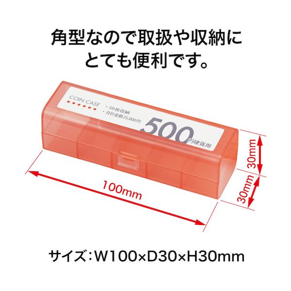 "●硬貨10枚ごとに仕切りが付いています。<br>●角型なので取扱いや保管に便利です。<br><br>●硬貨収納枚数:500円 50枚<br>●幅(mm):100<br>●奥行(mm):30<br>●高さ(mm):30<br>●色:赤<br><br>●ポリプロピレン(PP)<br><br>●10個×60箱…オフィス・住設用品 オフィス備品 店舗用品…"