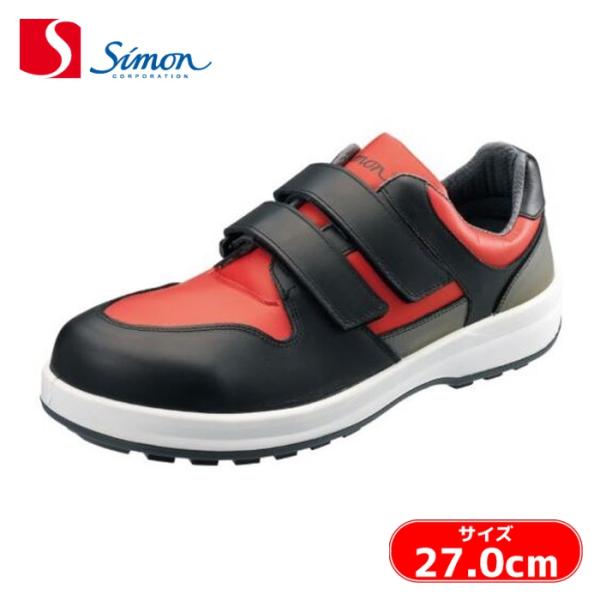 シモン 安全靴 JIS規格 8518 赤/黒 27.0cm 短靴 マジックテープ ベルクロ 紐なし 3層底Fソール 高級牛革 Simon 8518赤/黒 (1足) 8518RED/BK-27.0