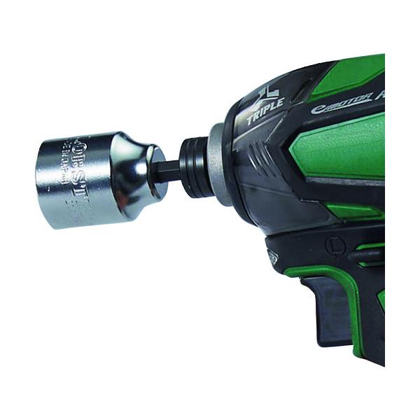 エビ ソケットビット(電動工具用)|特長:ローラーが自動的にネジ部をつかみ、素早く取付けます。 フォームタイ・Pコンの着脱にも使用できます。 ソケット部の六角穴に六角軸を圧入することで、ねじれ・折れに強く、トルク伝達効率が高いです。
