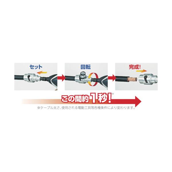 タジマ ケーブルストリッパー|特長:充電ドライバーにセットしてCVケーブルを差し込み回転させるだけで被覆が剥けます。 誰でも簡単、しかも精度は一定です。 剥き幅が調整できるアジャスター式で、圧着端子の幅を任意に設定が可能です。