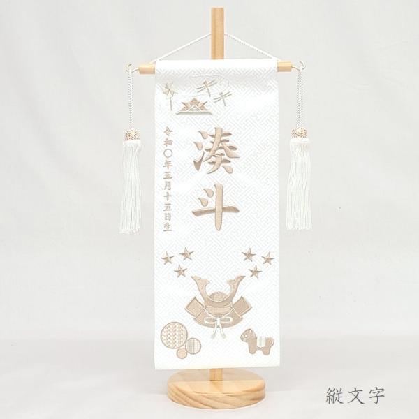 刺繍名前旗 名入れ 端午 白 タペストリー 初節句 出産祝い