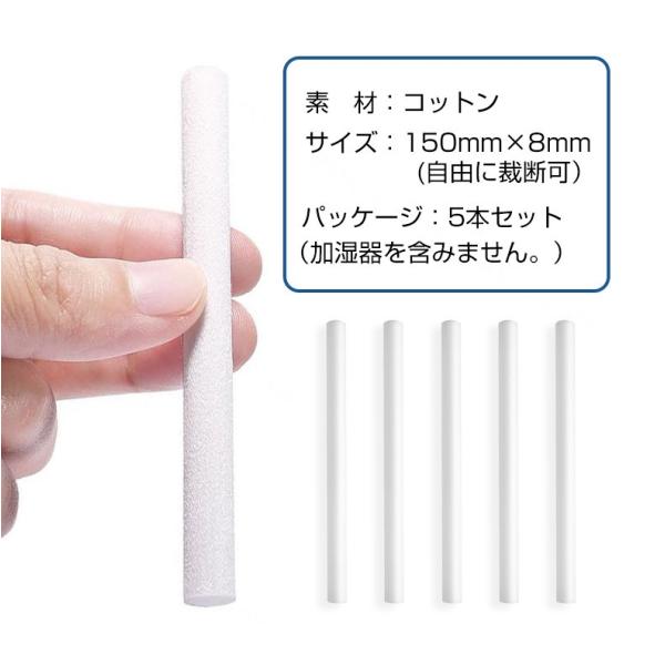 加湿器 交換用フィルター 5本セット 142mm×8mm 綿棒 超音波式 卓上 オフィス 車載 給水芯棒 長さを調整