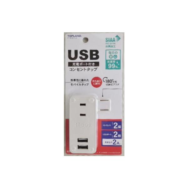トップランド USB充電ポート付 コンセントタップ 白 STPP100WT