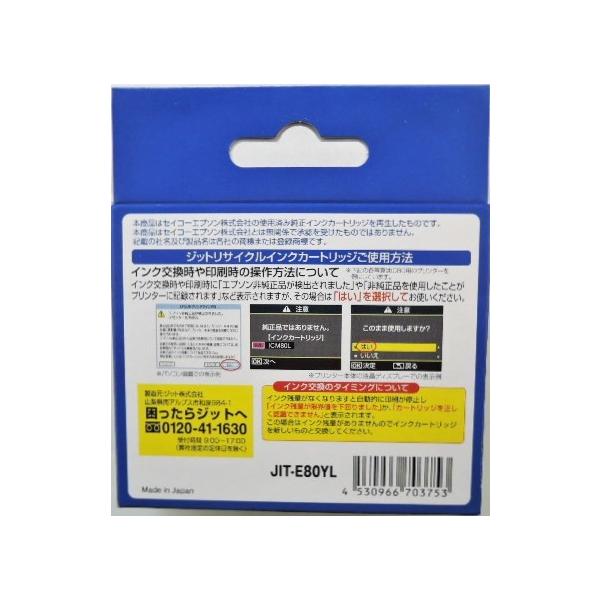 ジット 製品番 JIT−E80YLエプソン用 ICY80L イエロー 互換 増量タイプ