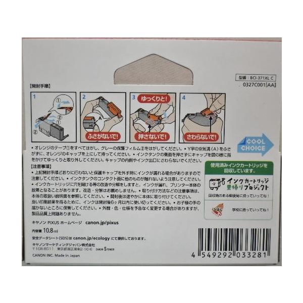 キャノン 製品品番 BCI−371XL C シアン純正インクカートリッジ 大容量タイプ