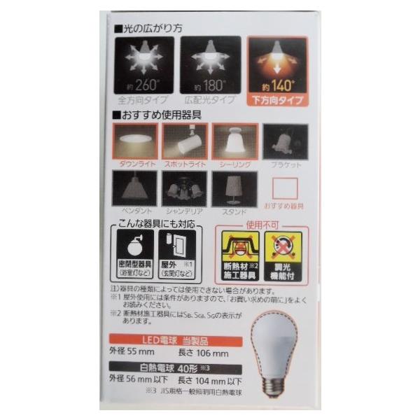 パナソニック 製品番 LDA4L−H−E−W2LED電球 下方向タイプ 40W形 電球色 485ルーメン消費電力4.4W密閉型器具対応 5年保証
