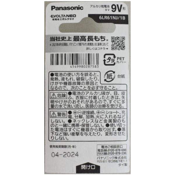 パナソニック 製品品番 6LR61NJ1B9V形 エボルタネオ アルカリ電池 1本 史上最高 長持ち