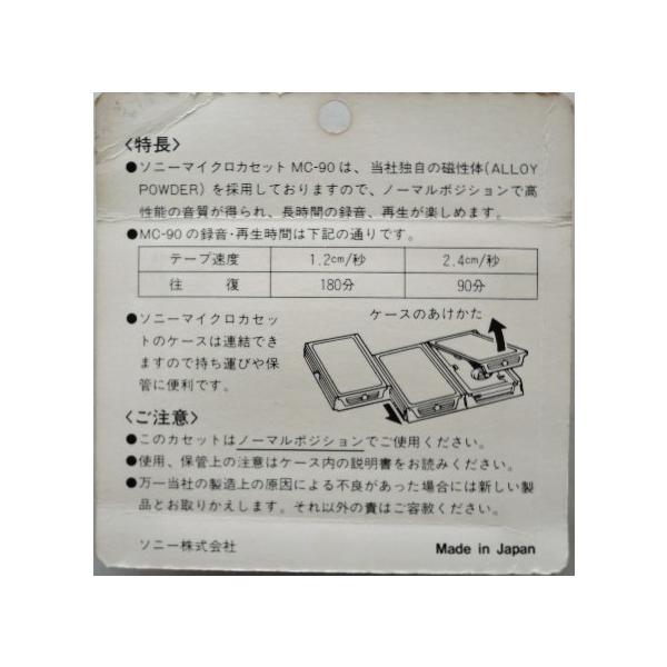 ソニー 製品番 MC−90往復90分 マイクロカセット テープ日本製