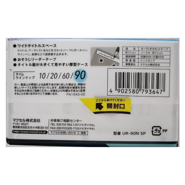 マクセル 製品品番 UR−90N5Pノーマルポジション カセットテープ 90分 5巻パック