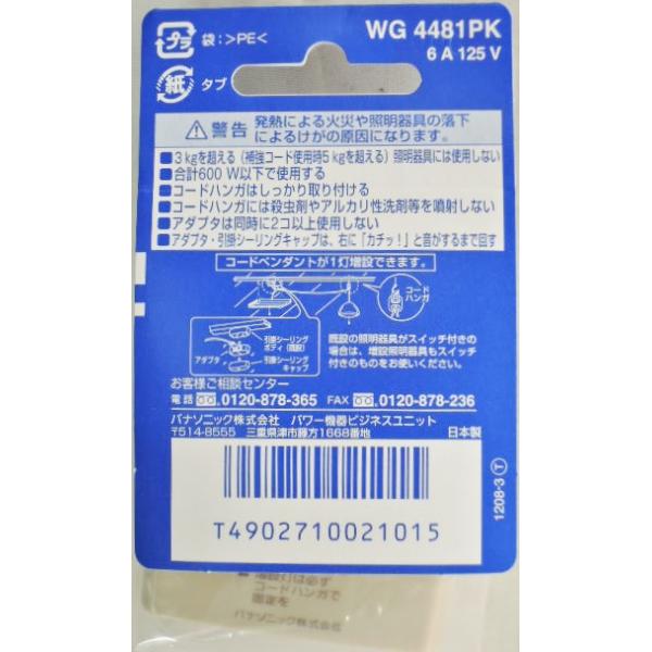 パナソニック 引掛シーリング増改アダプター 1型 WG4481PK