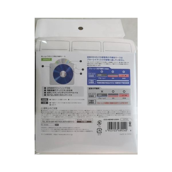 エレコム 製品番 CCD−NBWB120WHブルーレイ対応 不織布用ケース 60枚 両面 120枚収納2穴リング式