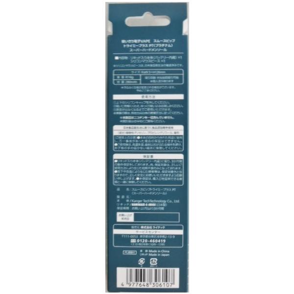 株式会社 ライテック 製品名 スムースビップ トライミープラス PT スーパーハードメンソール電子VAPE NO.1 使い切りタイプ リキッド入り本体(バッテリー内蔵)シリコンマウスピースx1吸引回数 約500回可能(個人差があります)