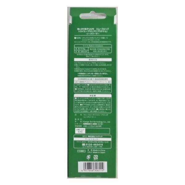 株式会社 ライテック 製品名 スムースビップ トライミープラス PT シークワーサー電子VAPE NO.1 使い切りタイプ リキッド入り本体(バッテリー内蔵)シリコンマウスピースx1吸引回数 約500回可能(個人差があります)