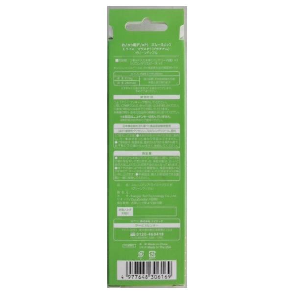 株式会社 ライテック 製品名 スムースビップ トライミープラス PT グリーンアップル電子VAPE NO.1 使い切りタイプ リキッド入り本体(バッテリー内蔵)シリコンマウスピースx1吸引回数 約500回可能(個人差があります)