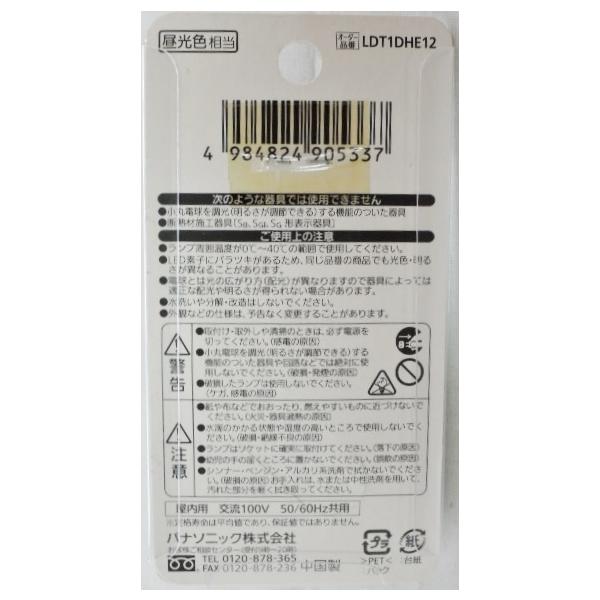 パナソニック 製品番 LDT1D−H−E12LED 小丸電球 E12口金 昼光色10ルーメン 定形外で発送(郵便物として投函されます)