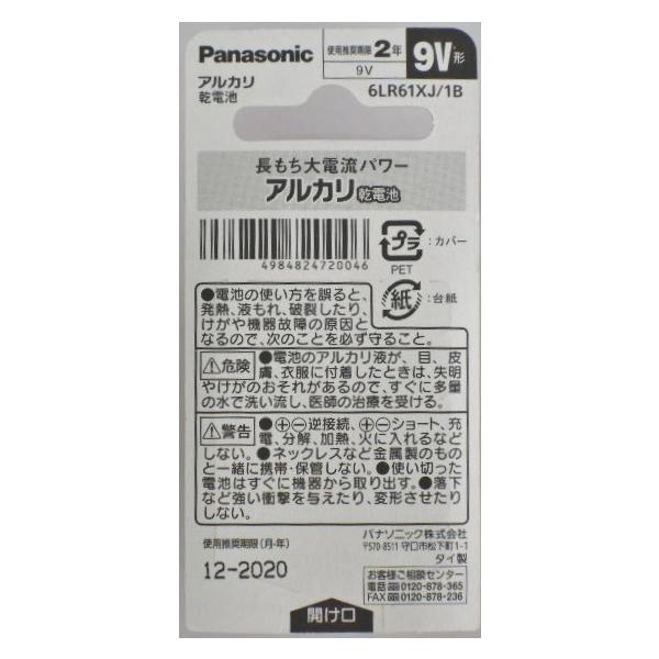パナソニック 製品品番 6LR61XJ1B9V形 アルカリ電池 1本