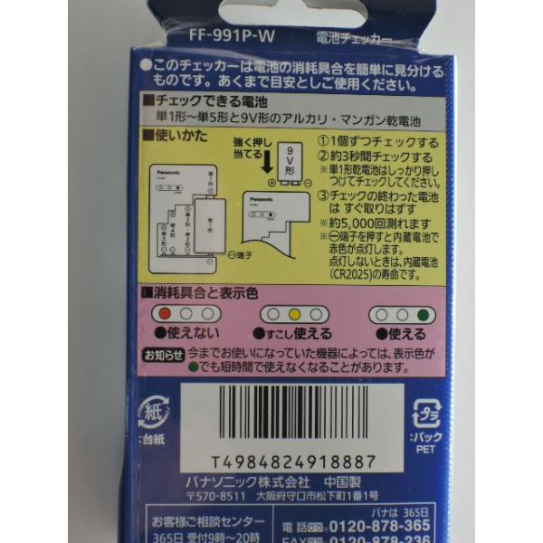 パナソニック 製品番 FF−991P−W測定可能電池 単1 単2 単3 単4 単5 角型9V形 のアルカリ乾電池 マンガン乾電池