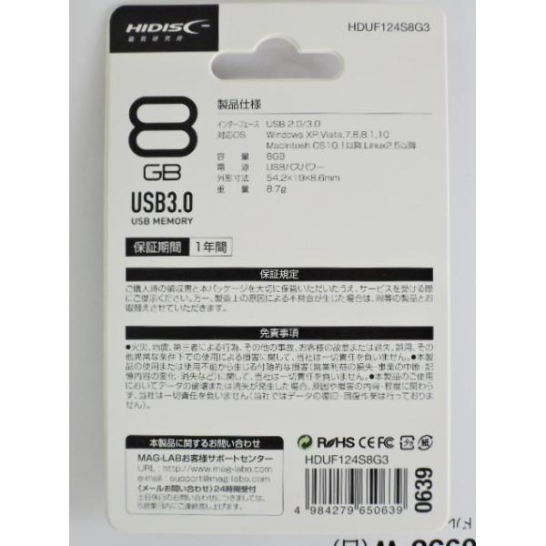磁気研究所 製品番 HDUF124S8G3USBフラッシュメモリー 8G 3.0 スライド式