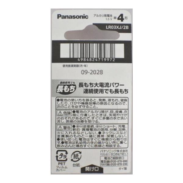 パナソニック 製品品番 LR03XJ2B単4形 アルカリ電池 2本組 推奨期限10年