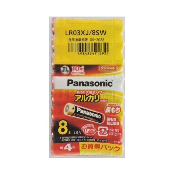 パナソニック 製品品番 LR03XJ8SW単4形 アルカリ電池 8本組 推奨期限10年