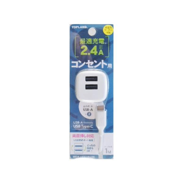 トップランド コンセント用超急速充電器 PD 対応 出力ポート USB−C x1 USB−A x1 SACP20−WT